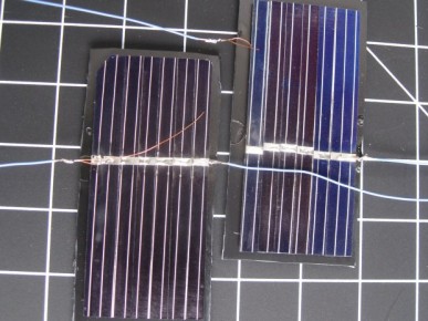 قم بقطع أربعة أسلاك، ويفضل أن يكون السلك طويلا حتى يصل البطارية بـمؤخرة الحاكوم حيث ستقوم بتركيب الخلايا الشمسية. إلحِم سلكا واحدا بـنهايتي السلك النحاسي الخارج من كل خلية.