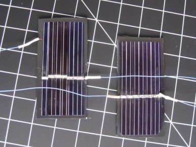 قم بقطع أربعة أسلاك، ويفضل أن يكون السلك طويلا حتى يصل البطارية بـمؤخرة الحاكوم حيث ستقوم بتركيب الخلايا الشمسية. إلحِم سلكا واحدا بـنهايتي السلك النحاسي الخارج من كل خلية.