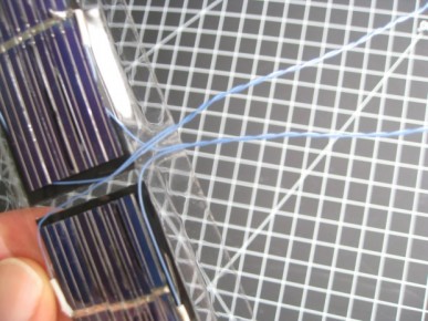 قم بقطع أربعة أسلاك، ويفضل أن يكون السلك طويلا حتى يصل البطارية بـمؤخرة الحاكوم حيث ستقوم بتركيب الخلايا الشمسية. إلحِم سلكا واحدا بـنهايتي السلك النحاسي الخارج من كل خلية.
