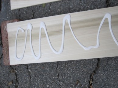 1.     قم بأخذ أحد لوحي الخشب ثم قم بوضع الغراء على أحد وجهيه كما في الصور.