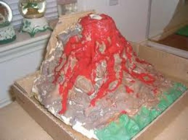 إذا أردت أن تبني جبلا به فوهة وفجوة داخله بواسطة صلصال أو معجون الأطفال، فيمكنك الإتيان بكأس صغير وضعه في منتصف الاناء ولف حوله العجينة على شكل بركان كما في الصورة. |